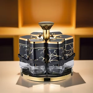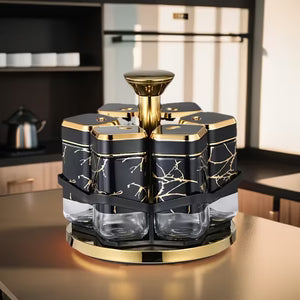 The Spice Carousel is a stylish and practical kitchen organizer designed to keep your spices neatly stored and easily accessible. Featuring a smooth 360-degree rotating base and elegant glass jars, it allows you to quickly find and use your favorite seasonings while cooking. Its modern design adds a premium touch to any kitchen countertop.