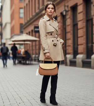 This Fashion Dual-Tone Satchel features a stylish contrast design with a textured yellow flap and a smooth brown body. Its structured silhouette and classic top handle make it perfect for everyday wear as well as semi-formal occasions. Designed to be compact yet practical, this handbag adds a refined touch to any outfit.